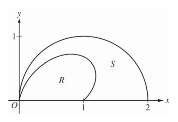 两曲线间 \(\frac{1}{2}\int(r_{\text{out}}^2 - r_{\text{in}}^2)\,d\theta\)